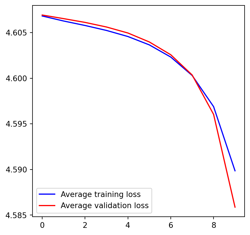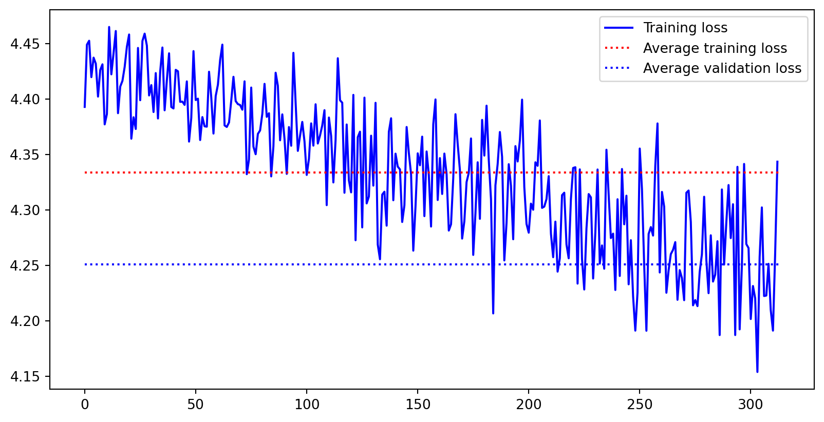 plt.plot([0, len(train_loss)], [val_loss_avg, val_loss_avg], "b:", label="Average validation loss")